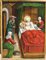 Sant'Anna, ancora distesa sul letto a baldacchino, mostra la bimba nata a Gioacchino che entra nella stanza lasciando la porta aperta.dove ci sono due ancelle che accudiscono la madre con cibo e panni caldi.