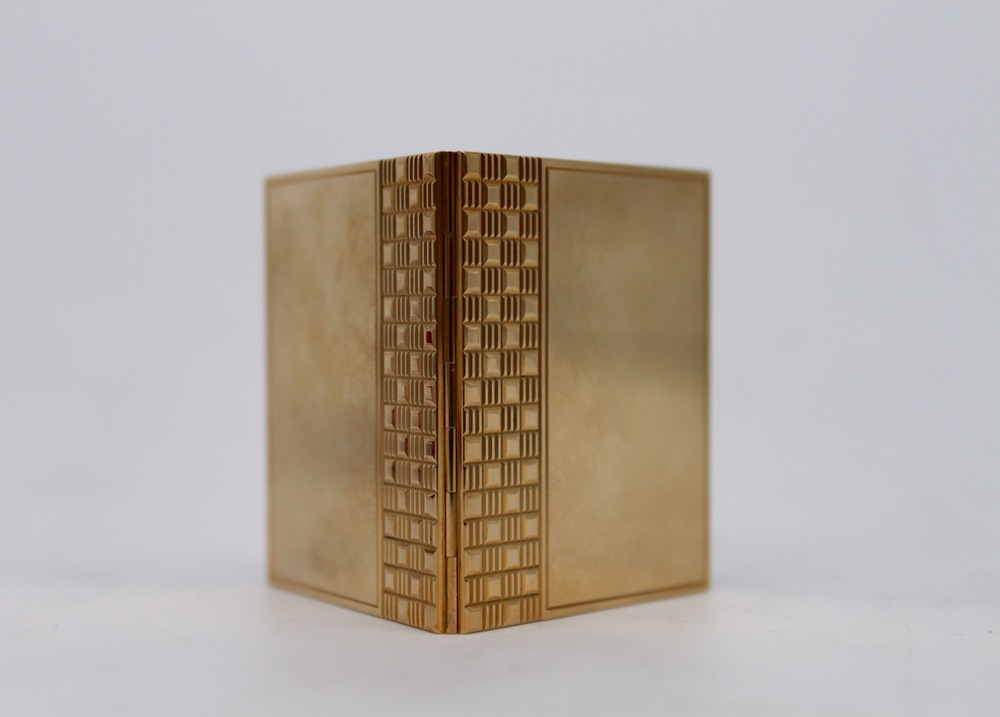 Con corpo incernierato liscio e decori geometrici , entro astuccio Cartier