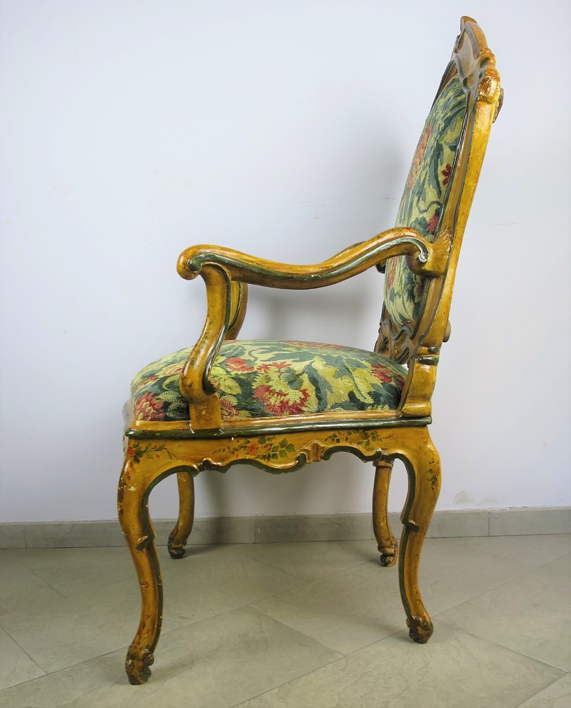 Poltrona Veneziana in legno laccato - A Venetian polychrome painted armchair