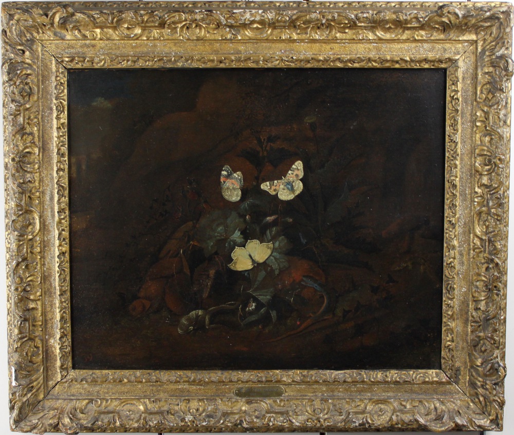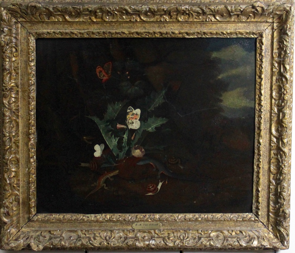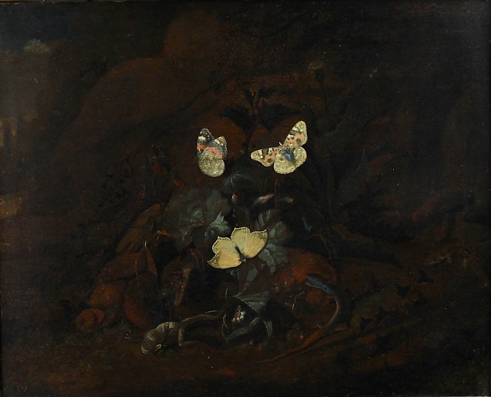 Soggetto originale e raro vede come grande artefice alla sua nascita e diffusione l'artista olandese Marseus van Schrieck. A Roma fu soprannominato dai suoi colleghi "Ficcanaso" per il suo istinto di ardente indagatore del mondo naturale. Egli amava allevare nella sua fattoria insetti, lucertole e serpenti, nonché osservarli e riprodurli pittoricamente nel loro habitat. Seguendo l'orientamento del suo maestro anche Rachel Ruysch (L'Aia 1664 - Amsterdam 1750) dipinse scene di sottobosco ritraendo sia le piante che i piccoli animali.