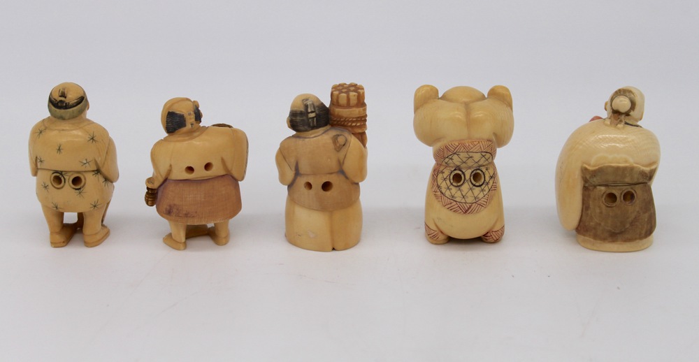 Lotto di cinque netzuke in avorio - A group of five ivory netzuke