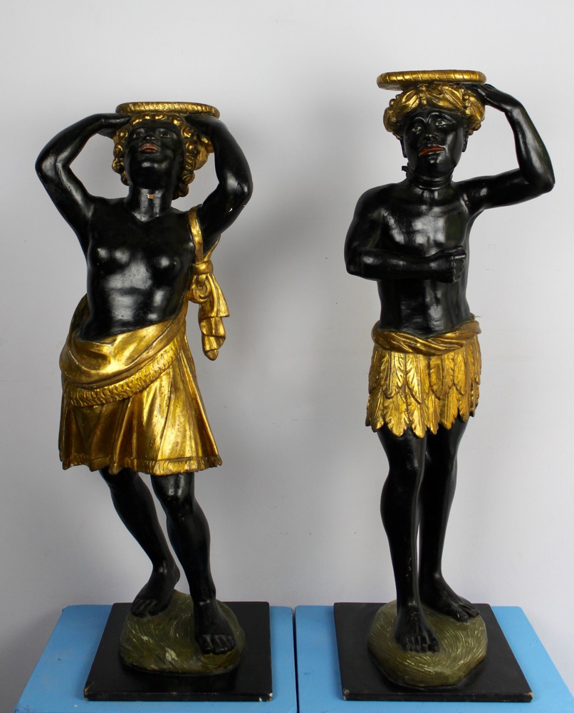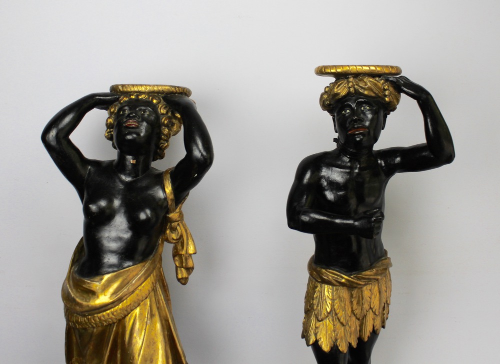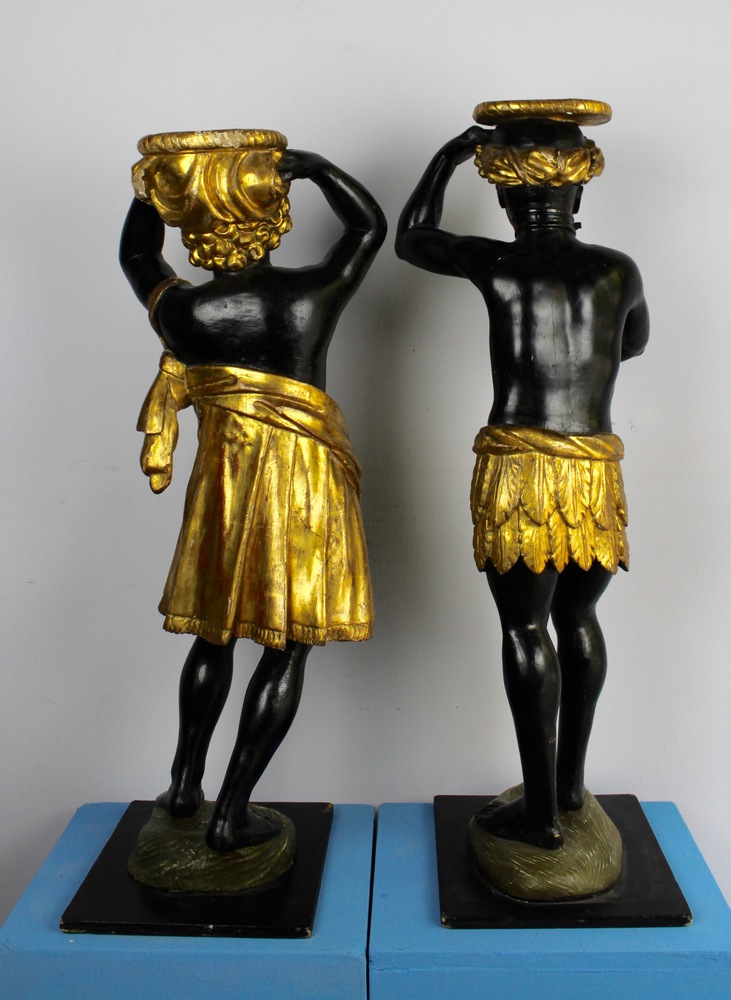 Coppia di moretti di legno laccato e dorato