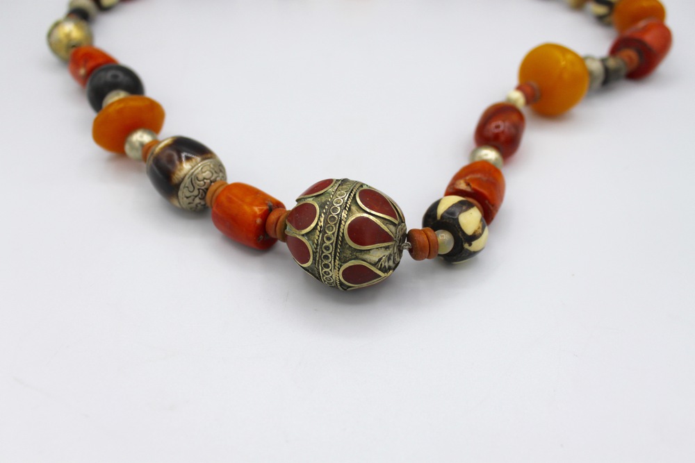 With enameled hard stone coral and amber elements
