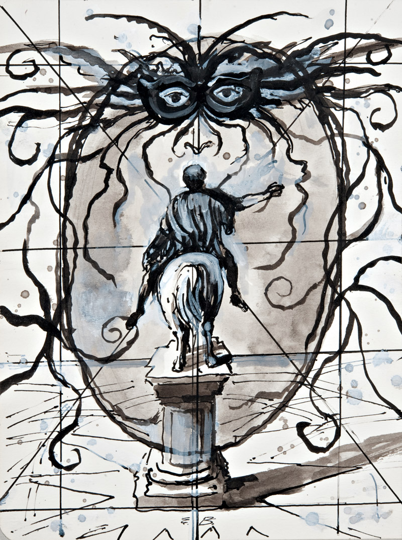 Eugene Berman (San Pietroburgo 1899 ‑ Roma 1972) “Cavallo e cavaliere” tecnica mista su carta (cm 22,7x17) Siglato in basso al centro