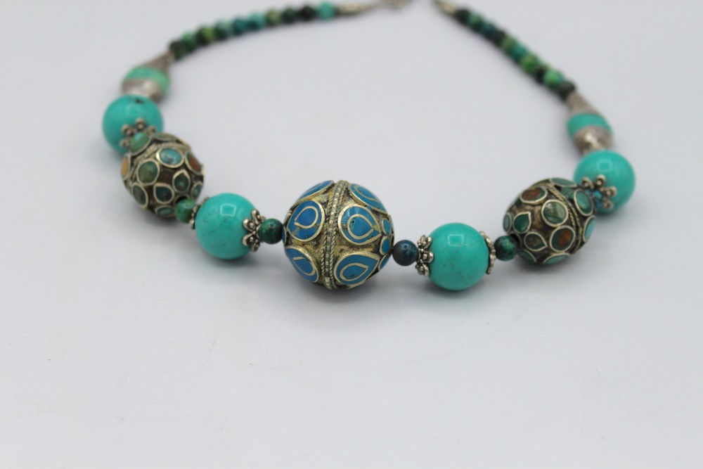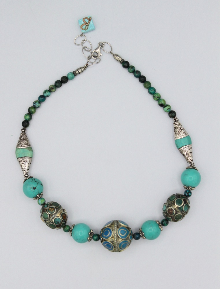 With elements in turquoise and lapis