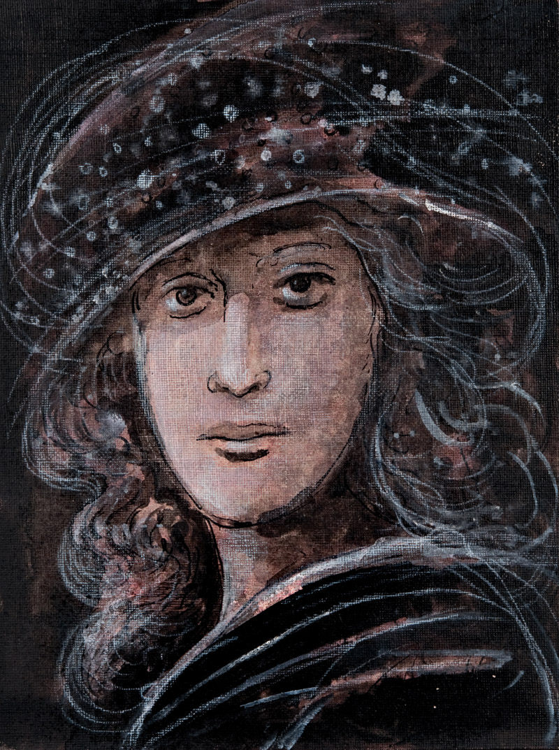 Eugene Berman (San Pietroburgo 1899 ‑ Roma 1972) “Donna con cappello” tecnica mista su cartone telato (cm 30x22,8)