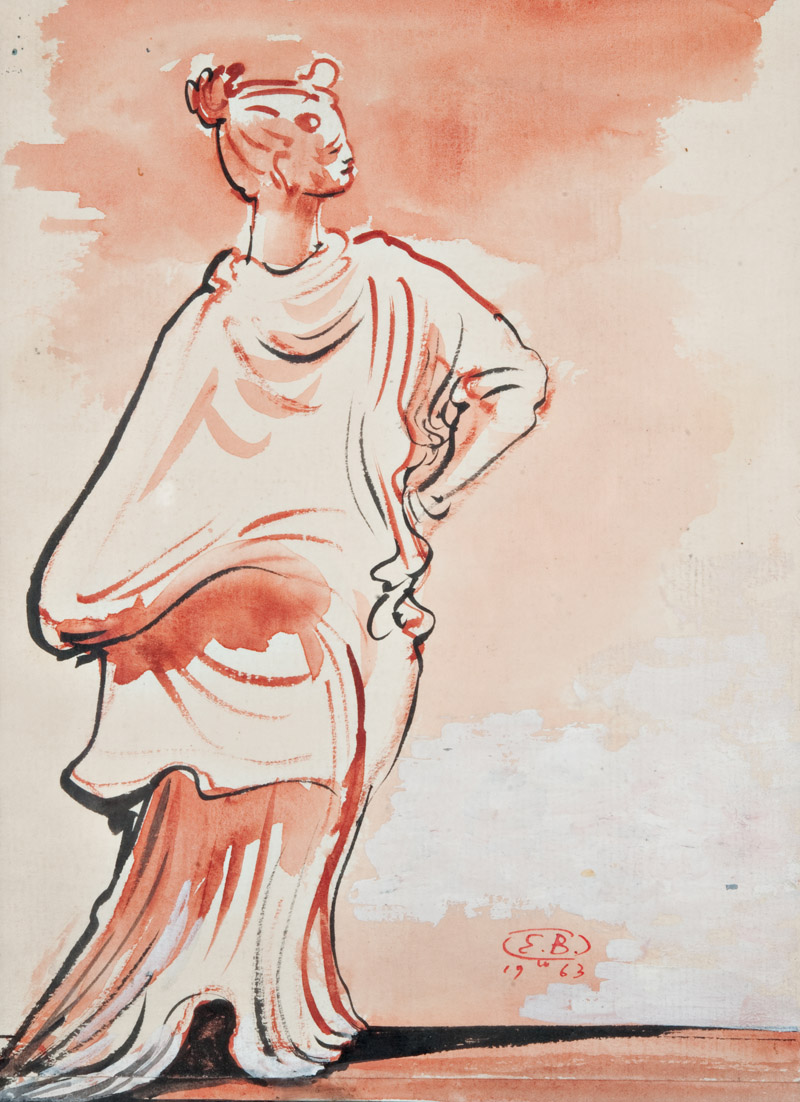 Eugene Berman (San Pietroburgo 1899 ‑ Roma 1972) “Dea” 1963 Tecnica mista su carta (cm 23,9x17,5) Siglato e datato 1963 in basso a destra
