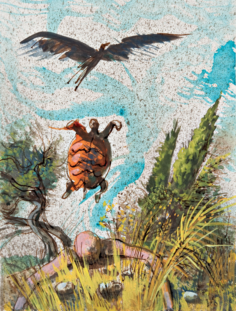 Eugene Berman (San Pietroburgo 1899 ‑ Roma 1972) “Figura con due animali e paesaggio” tecnica mista su carta (cm 23,5x18)