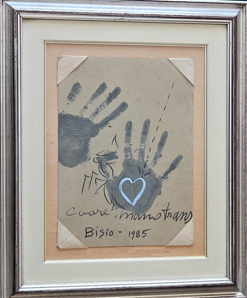 Pietro Bisio CUORE, MANO TRANS tecnica mista su cartone, cm 33x24 firma e...
