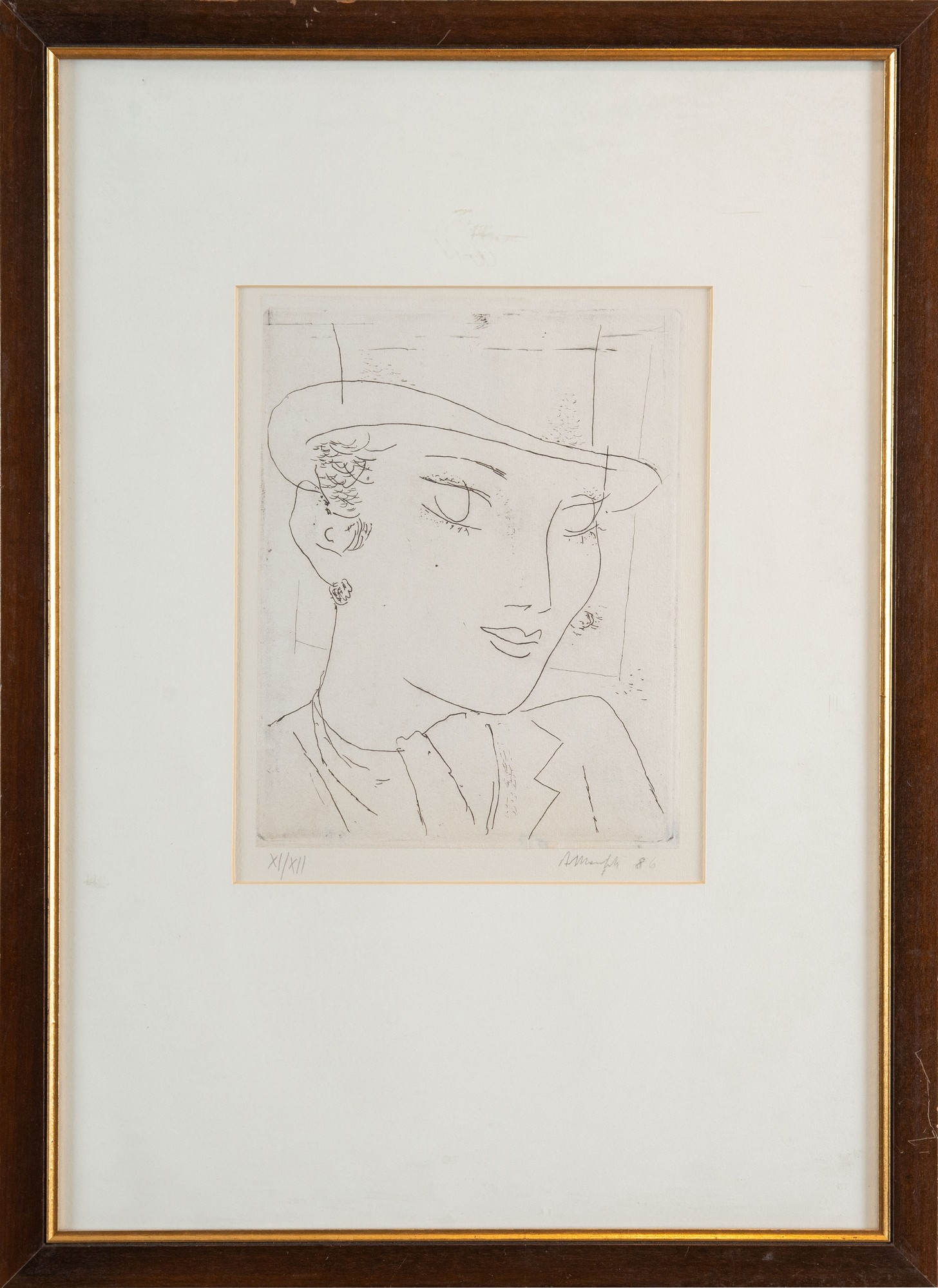 ALBERTO MANFREDI (Reggio Emilia 1930 – 2001). “Volto Femminile”, 1986. Acquaforte puntasecca su carta. Lastra cm 23x18. Opera firmata e datata in basso a destra A. Manfredi 86, numeri di tiratura in lettere romane in basso a sinistra XI/XII. Opera pubblicata in “Enciclopedia dei pittori e scultori italiani del novecento” Ed. Il Quadrato Gennaio 1991.