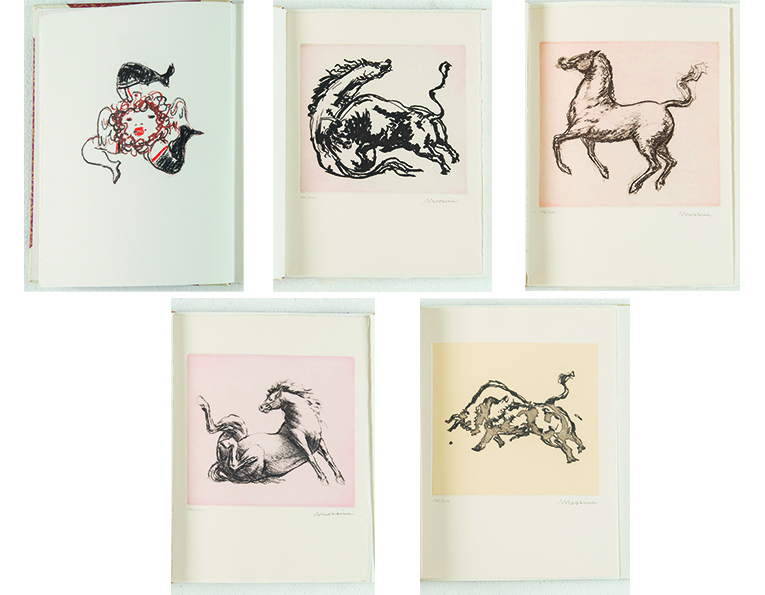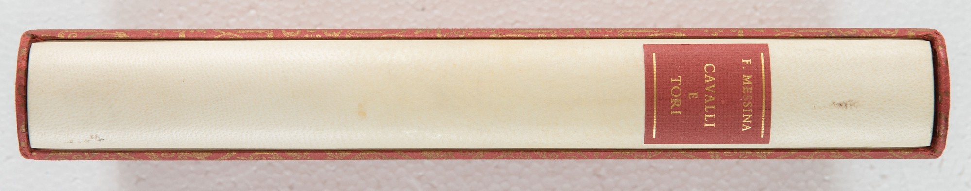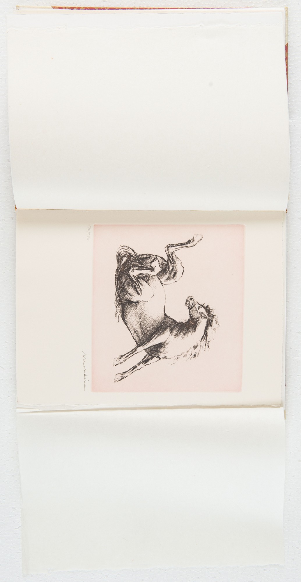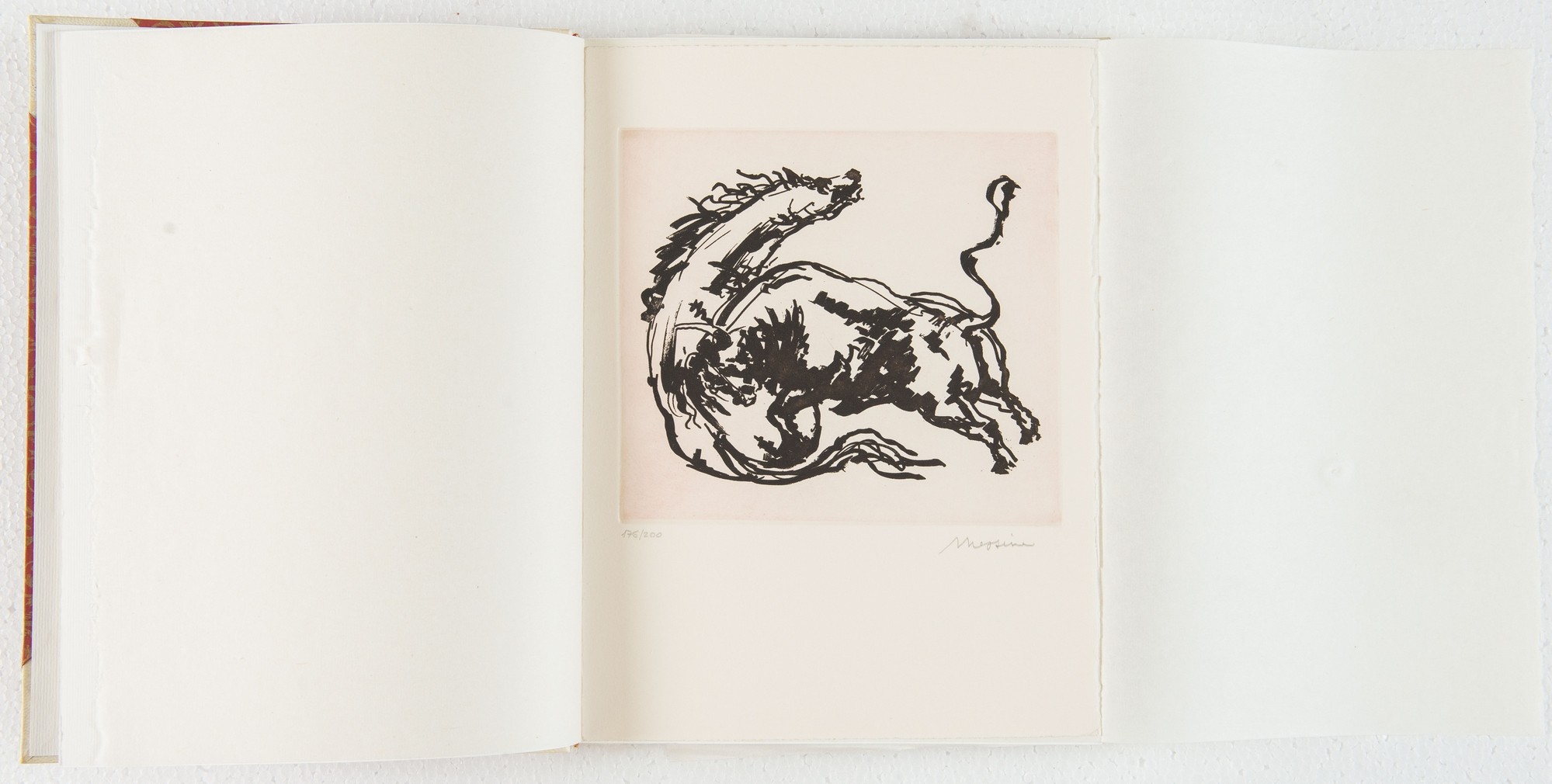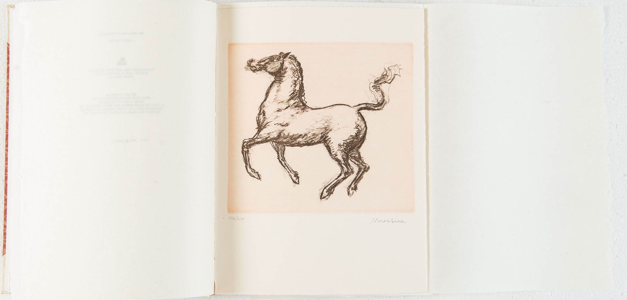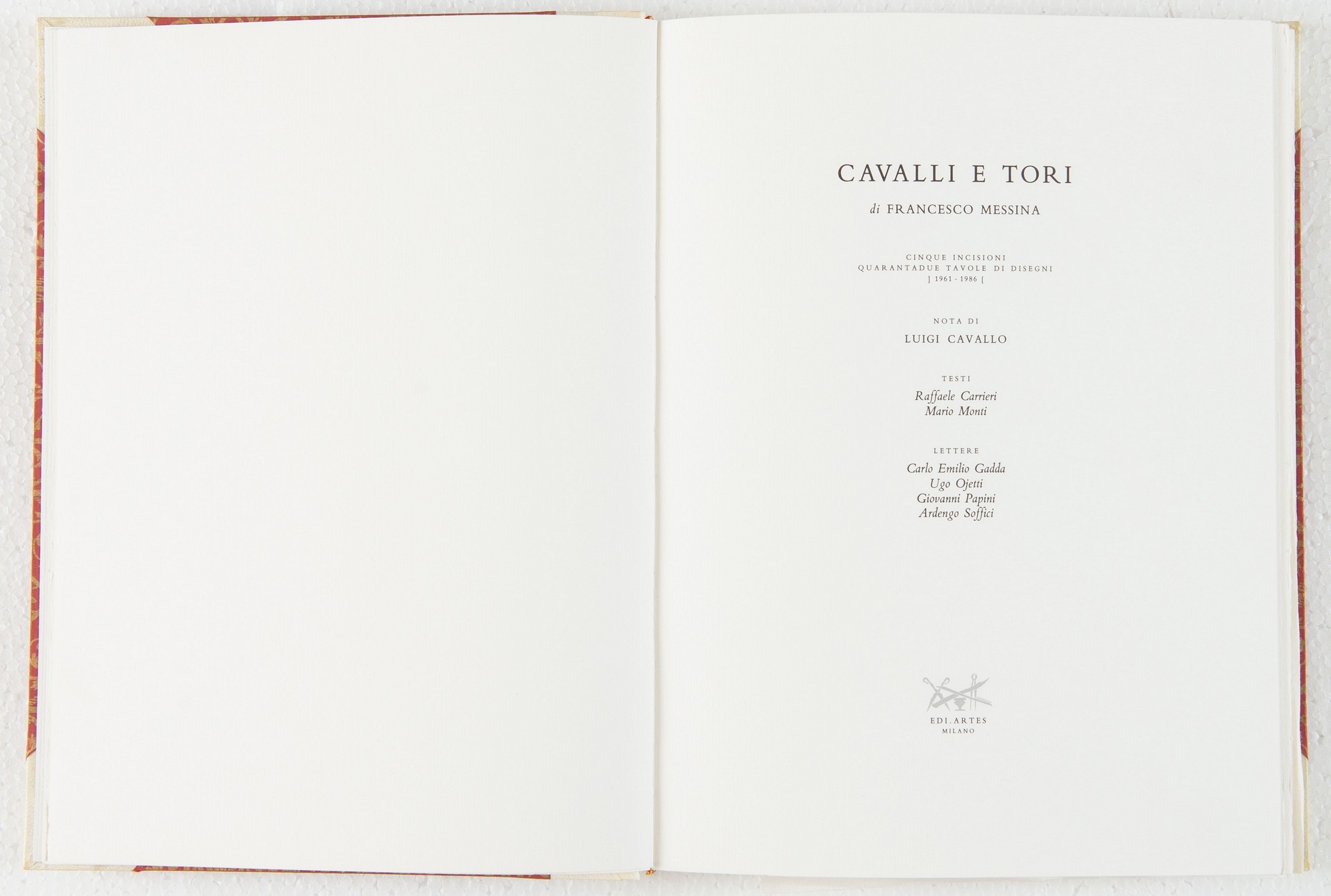 FRANCESCO MESSINA (Linguaglossa 1900 – Milano 1995). “Cavalli e Tori”, 1988. Libro contenente cinque incisioni numerate e firmate dall’artista e quarantadue tavole di disegni 1961-1986, Ed. ARTES MILANO. Di questo volume sono state tirate duecento copie numerate da 1/200 a 200/200, questo è il numero 176/200.