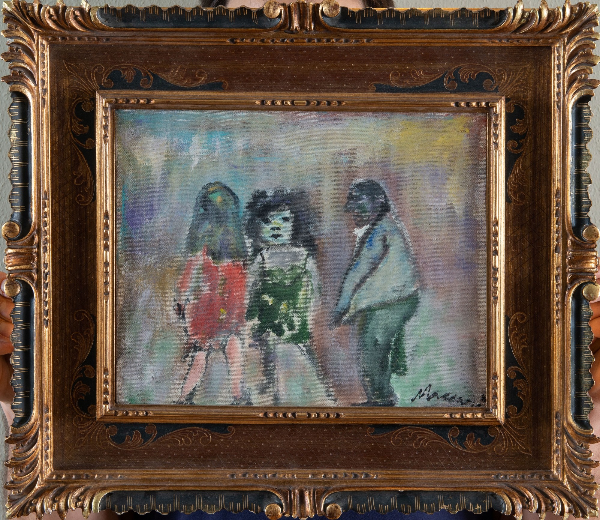 MINO MACCARI (Siena 1898 – 1989). “Personaggi”. Olio su tela. Cm 25x30. Opera firmata in basso a destra Maccari.