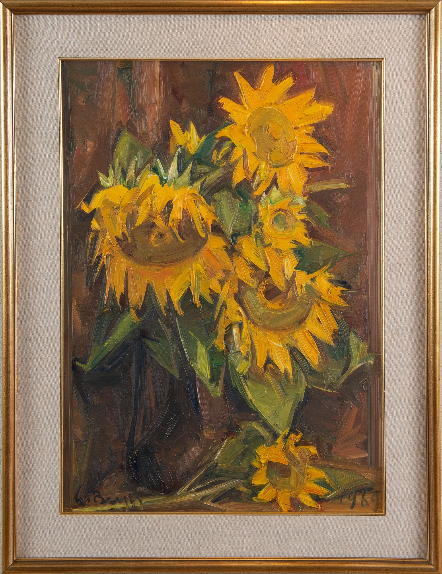 GUIDO BUGLI (Bologna 1912 – 2003). “Girasoli”, 1969. Olio su tela. Cm 70x50. Opera firmata in basso a sinistra G. Bugli, opera datata in basso a destra 1969.