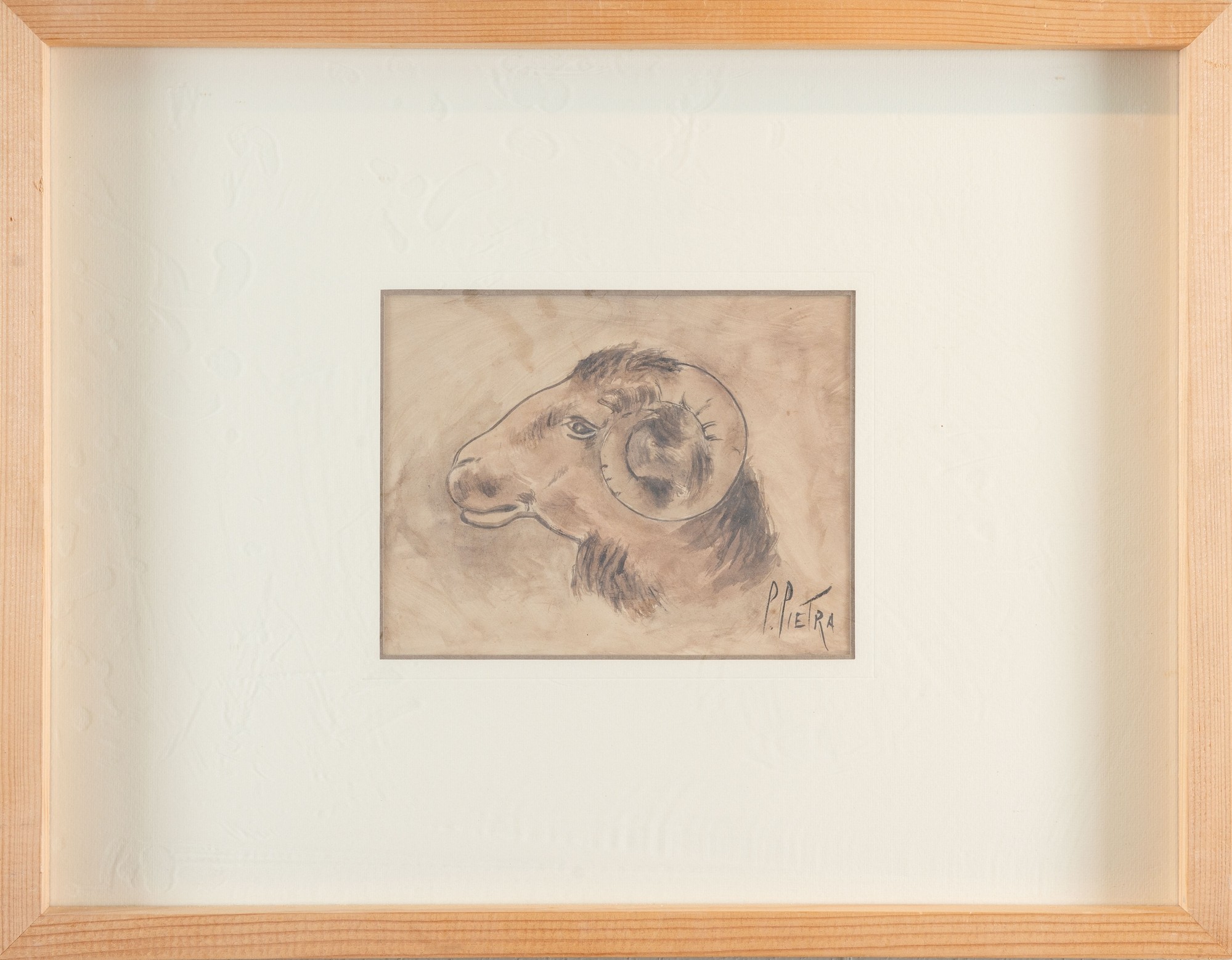 PIETRO PIETRA (Bologna 1885 – 1956). “Montone”. Acquerello su carta. Cm 16x20,5. Opera firmata in basso a destra P.Pietra.