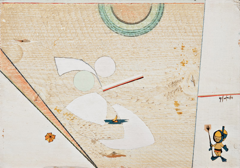 Sergio Dangelo (Milano 1932) “Senza titolo” 1964 tecnica mista e collage su tavola (cm 22,4x31,8) Firmato e datato a sinistra; firmato, datato e dedicato al retro