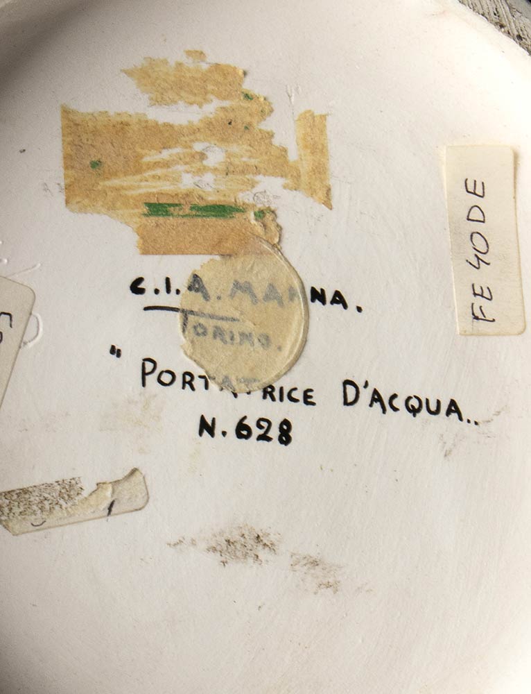 Earthenware sculpture of an oriental woman with polychromy decoration. Brand on the base: CIA MANNA TORINO “PORTATRICE D'ACQUA” N 628.