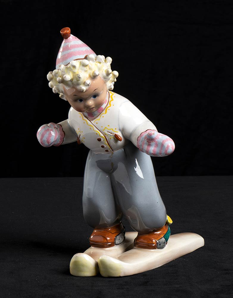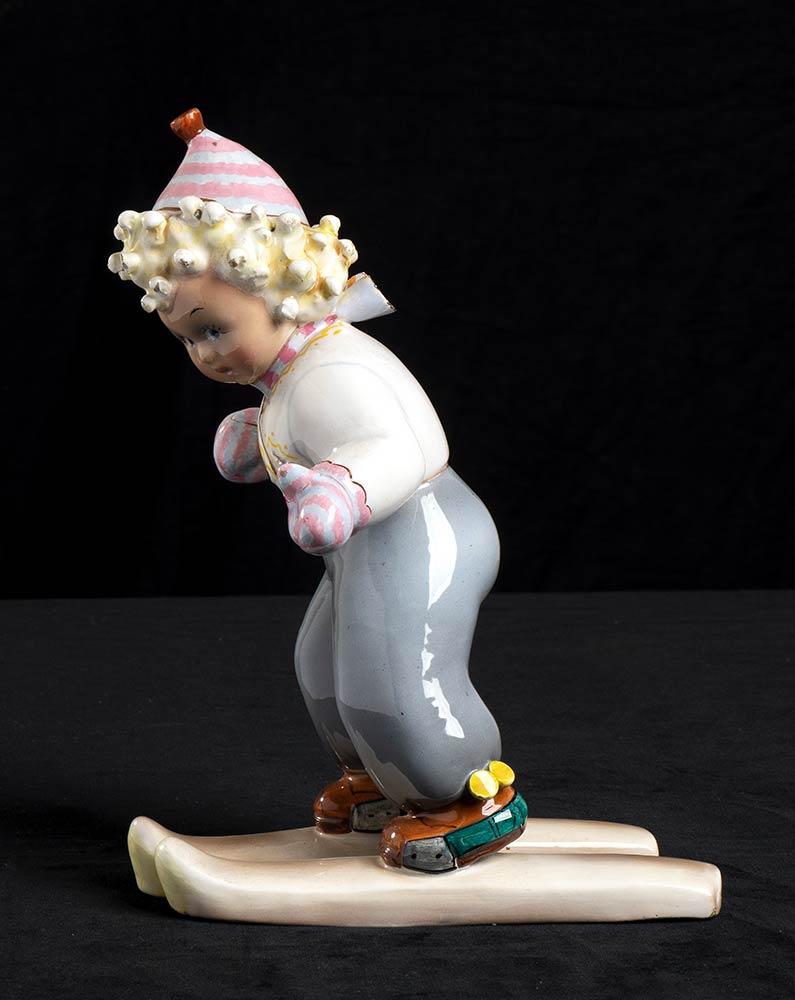 Polychrome ceramic sculpture of a skier. Signed under the base: Tosin Italy.