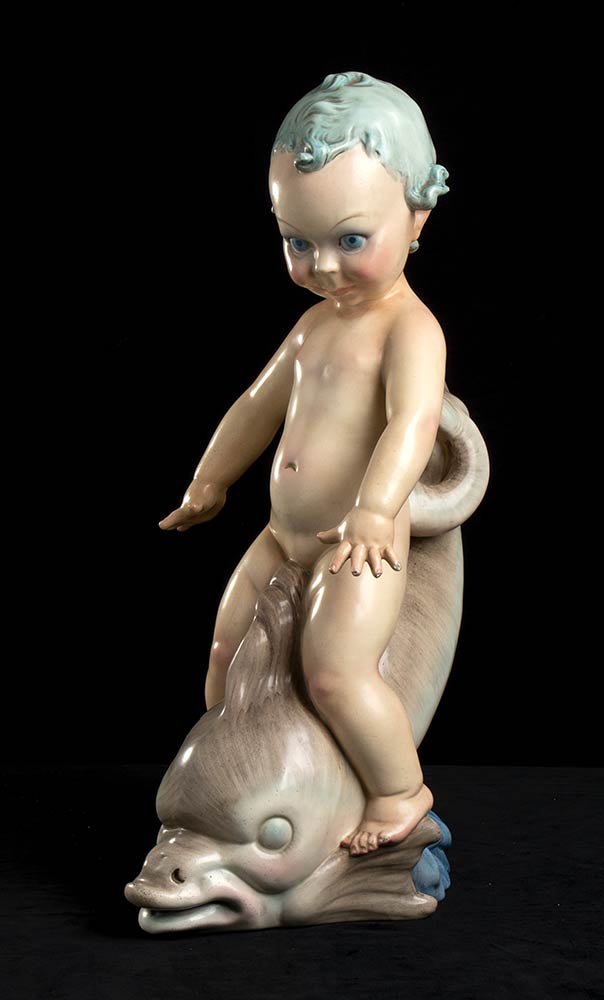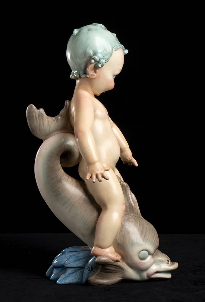 Earthenware shaped as slip casting and decorated in polychromy. Signature under the base “Lenci - ITALY 1:40” and decorator graphic symbol “AJR”, mod 668, on the base.