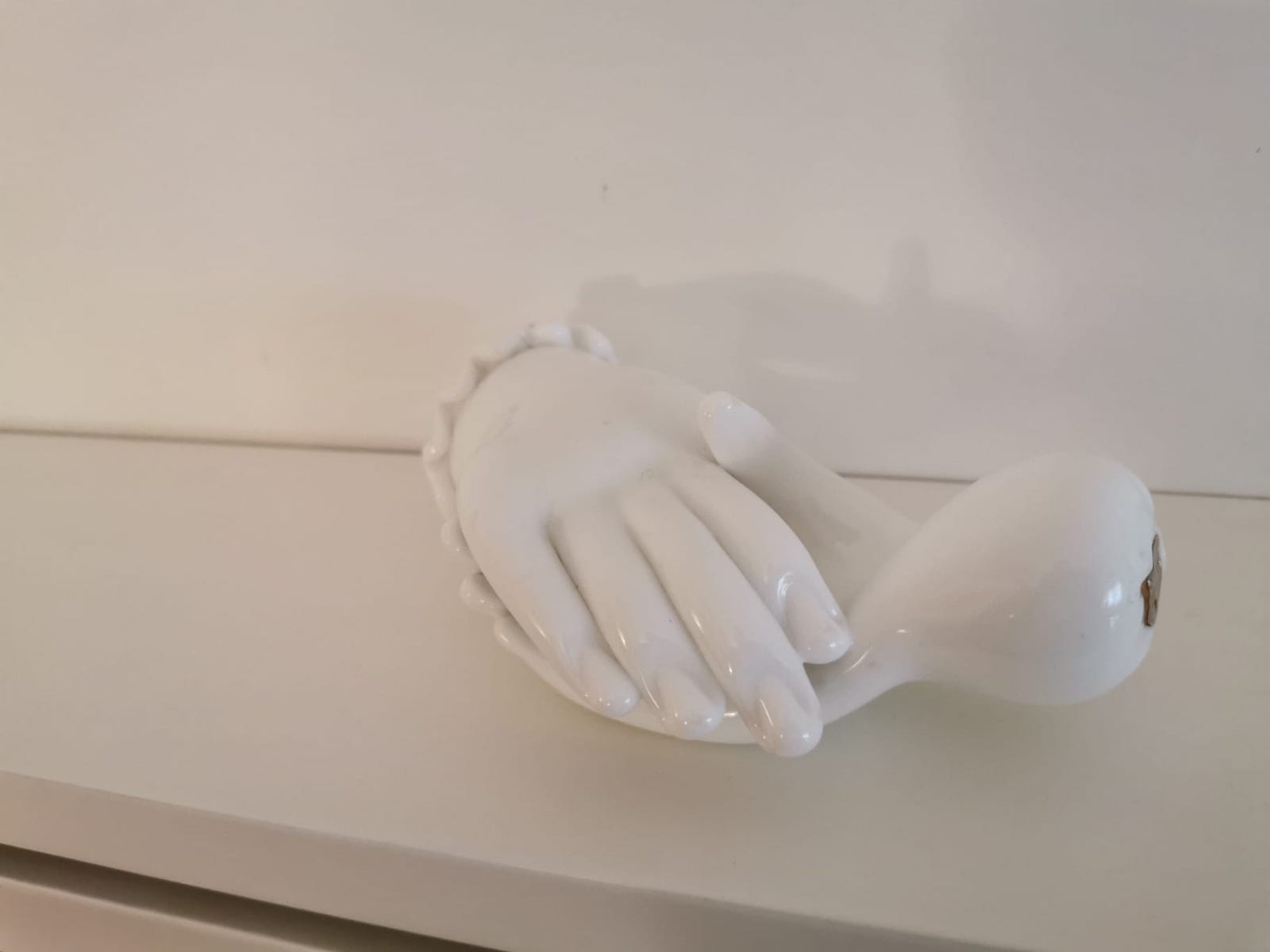 Precedente Lotto 155 Successivo Bertolami Fine Art - Piazza Lovatelli 1, 00186 Roma Asta 77 - Arti Decorative del '900 Sessione Unica martedì 16 giugno 2020 ore 16:30 (UTC +01:00) VENINI - PAIR OF MILKWHITE GLASS HANDS, 1950 CA VENINIPAIR OF MILKWHITE GLASS HANDS, 1950 CA14 cm