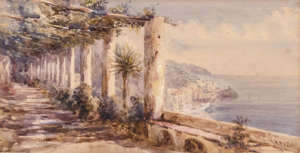 LUIGI LANZA<br>Venezia, 1860 - 1917 - Il chiostro dei Capuccini di Amalfi