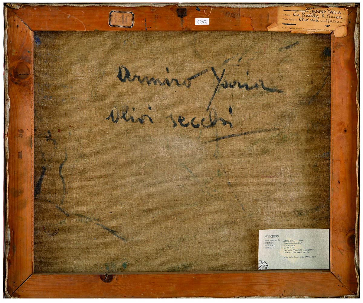 Firma e titolo al retro: Armiro Yaria, Olivi secchi (Paesaggio dinamico)