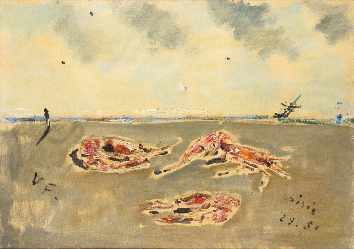 FILIPPO DE PISIS<br>Ferrara, 1896 - Brugherio, 1956 - Aragostine in riva al mare, 1950-51