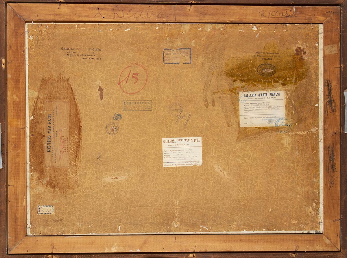 Etichetta e timbro al retro della Galleria d’Arte Sianesi, Milano