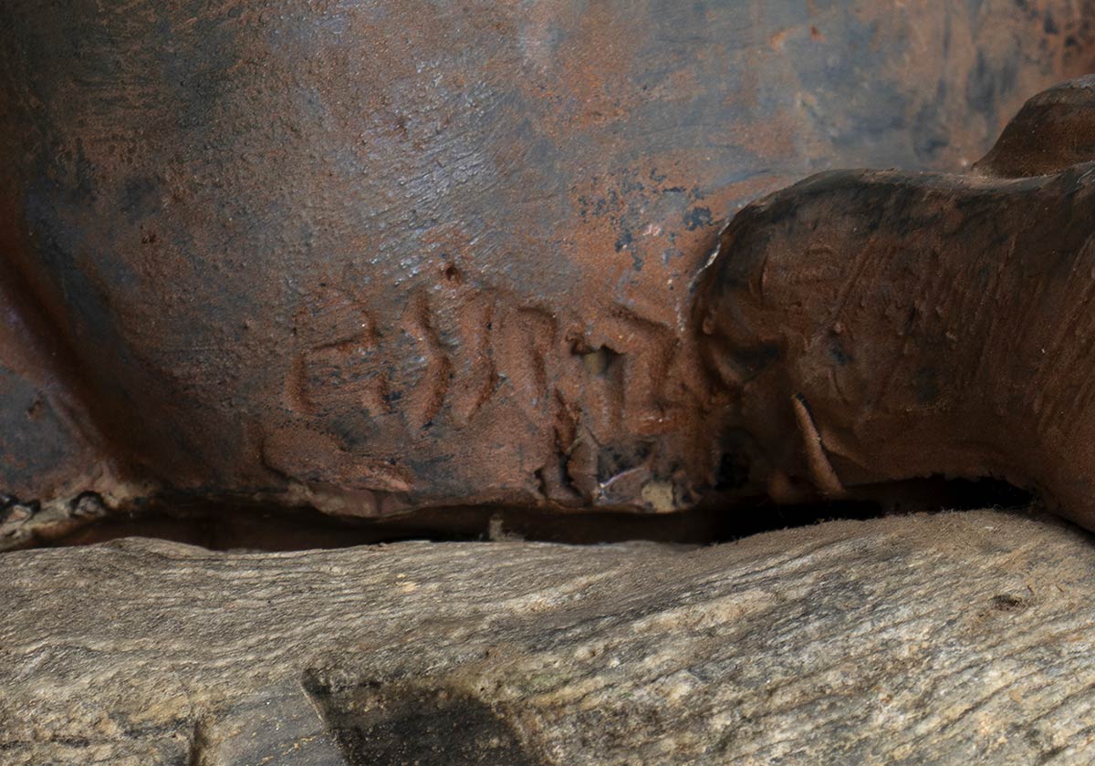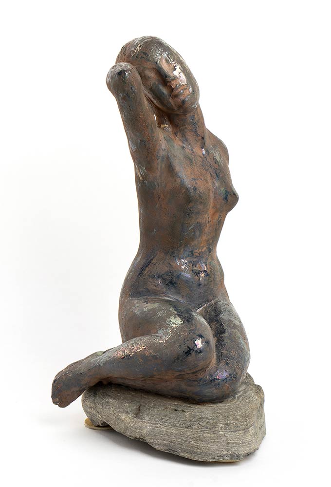 Scultura in bronzo invetriato con base in marmo, 41 x 17 x 22 cm circa