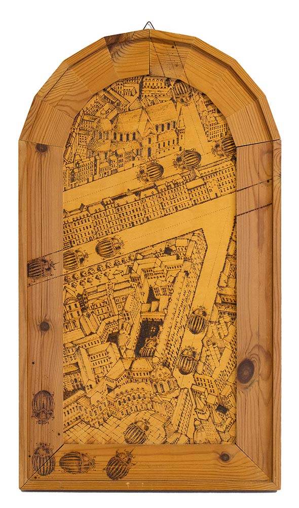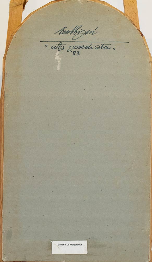 Firma, titolo e data al retro: Valeriano Trubbiani, Città assediata, 1983