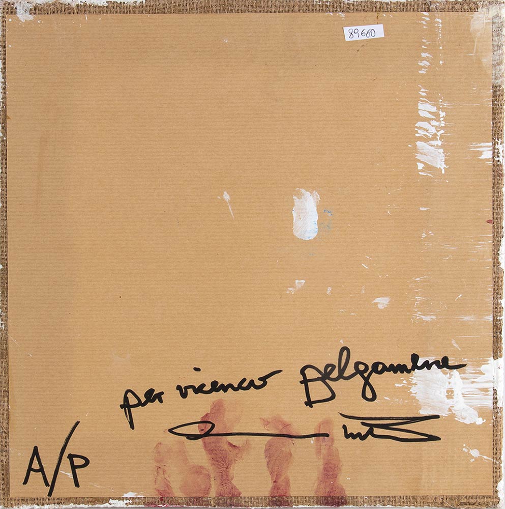 Firma e dedica al retro: “Per Vicenco Belgamene”, Hermann Nitsch