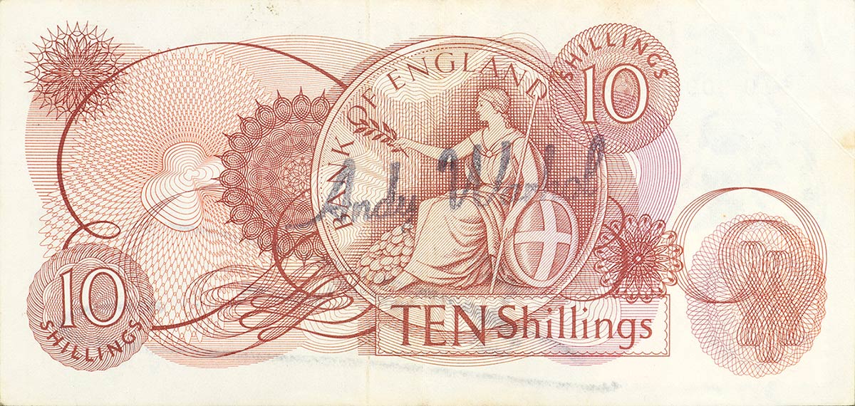 Le prime banconote da dieci scellini della Banca d'Inghilterra sono stampate in rosso su entrambi i lati, con la dicitura “Prometto di pagare al portatore su richiesta la somma di dieci scellini”. Questa dichiarazione rimane sulle banconote della Bank of England ancora oggi.