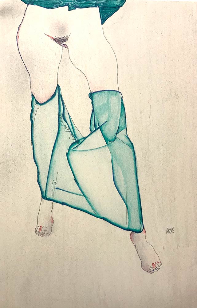 Standing Female Nude from the Waist Down è una litografia bellissima, originale e colorata dal portfolio "" Erotica "" di Egon Schiele.