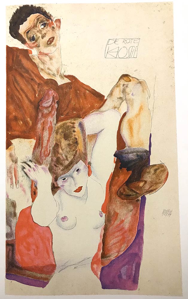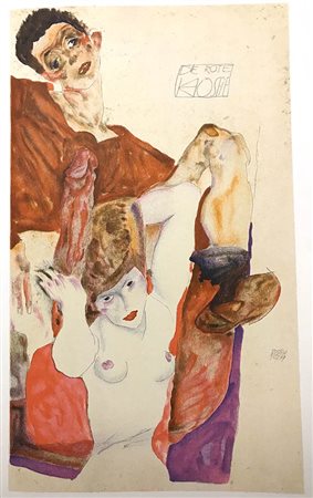 The Red Host è una litografia colorata originale dal portfolio "" Erotica "" di Egon Schiele.
