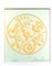 It represents an abstract composition which has yellow stylized symbols on a light green background. In the rounded space, there are spirals, harrows and other abstract icons. The technique is very particular, a chalcography with relief silhouettes.