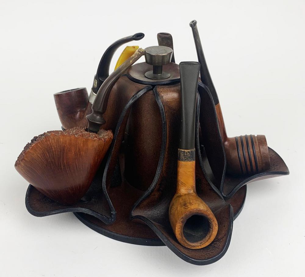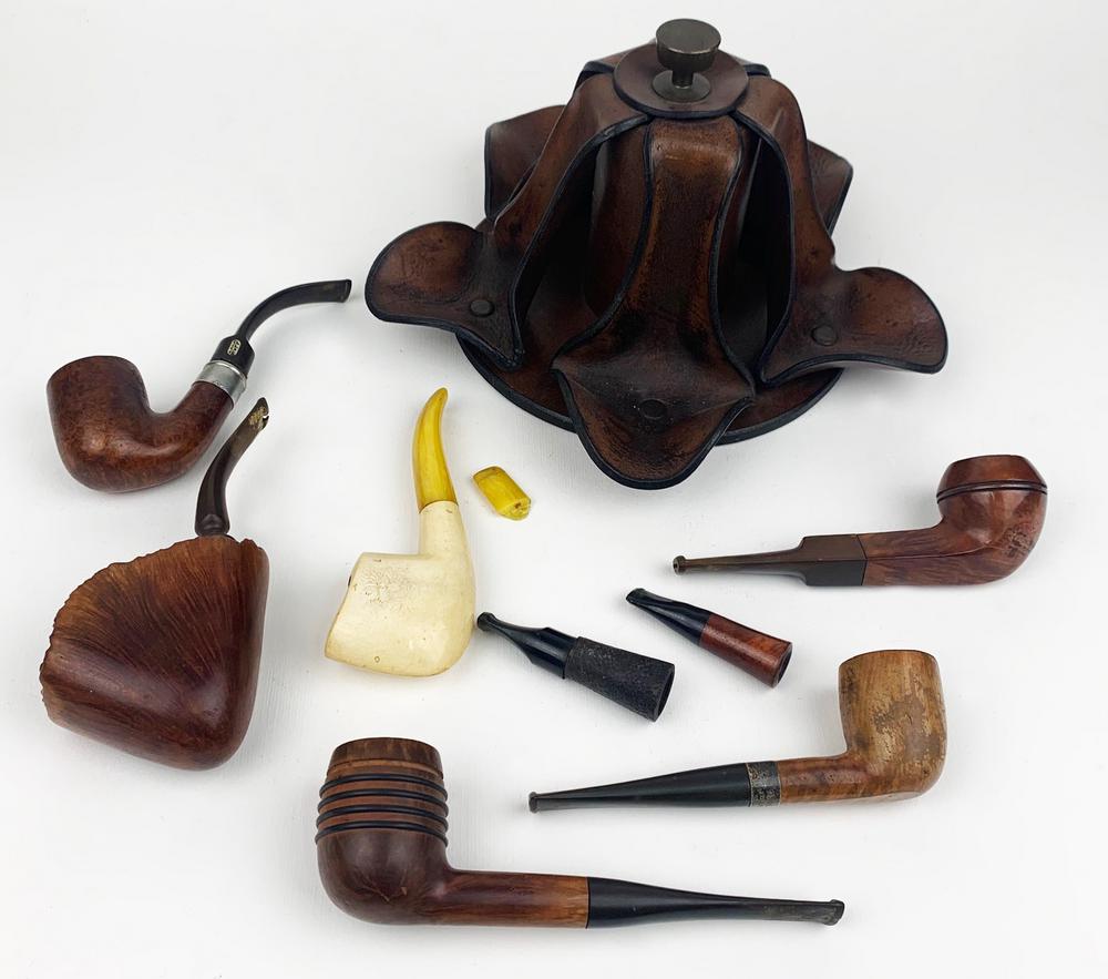 LOTTO DI SEI PIPE E TRE BOCCHINI di diverse marche e materiali con portapipe...