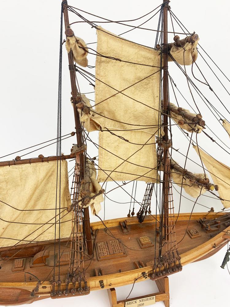 MODELLINO DI IMBARCAZIONE in legno e stoffa del Brick Negrier del 1830 cm...