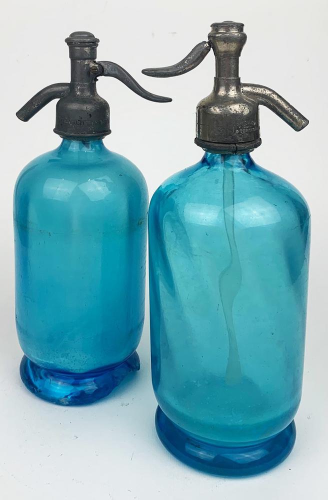 COPPIA DI SIFONI in vetro azzurrato con macchinetta in stagno Torino, inizio...