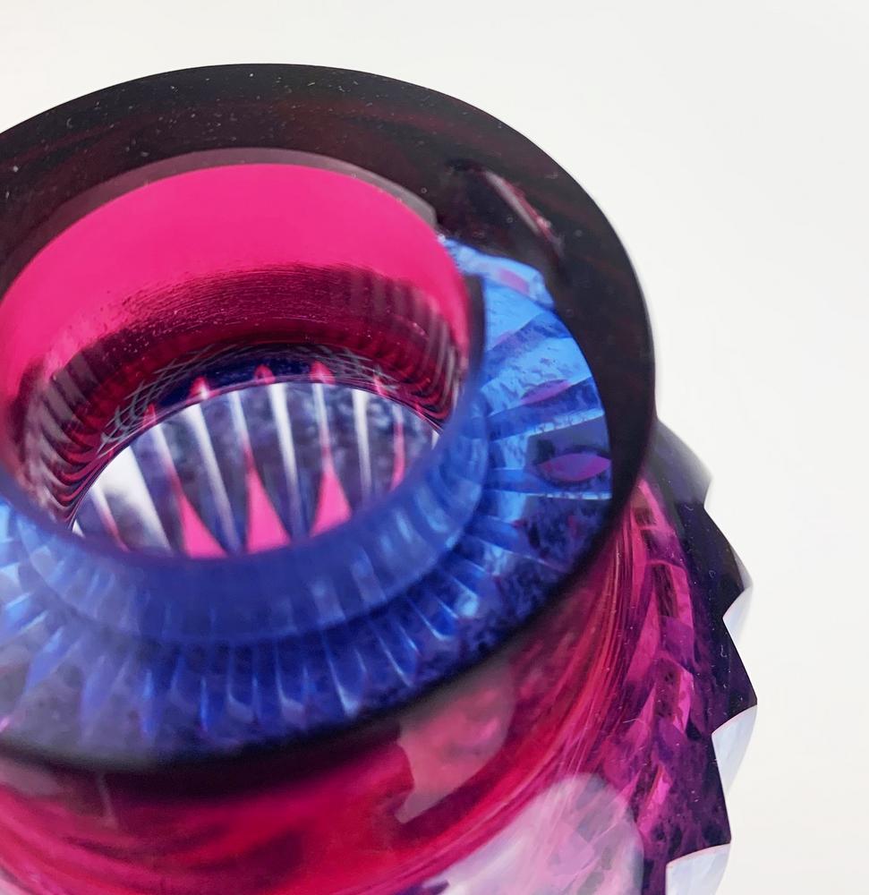 BOTTIGLIA IN CRISTALLO DI BOEMIA di colore azzurro e rosa completa di tappo...