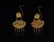 Paio di orecchini in oro modellati a pelta sospesa tramite catenelle ad un gorgoneion stilizzato, decorata da tre rosette in rilievo e con quattro pendenti ritorti con pasta vitrea blu nella parte inferiore.