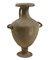 Hydria ad imitazione dei prototipi metallici con piede a tromba inferiormente cavo; corpo biconico con spalla arrotondata; collo cilindrico svasato verso l'alto e verso il basso; orlo estroflesso desinente in listello verticale modanato; ansa verticale a sezione ovale fra la spalla e la meta` del collo; due anse orizzontali a sezione ovale ripiegate a gomito sulla spalla. Spalla e corpo decorato da linee verticali incise convergenti. Sotto l'ansa verticale grande campo rettangolare risparmiato; sul fondo foro passante che testimonia la funzione solo funeraria del vaso.