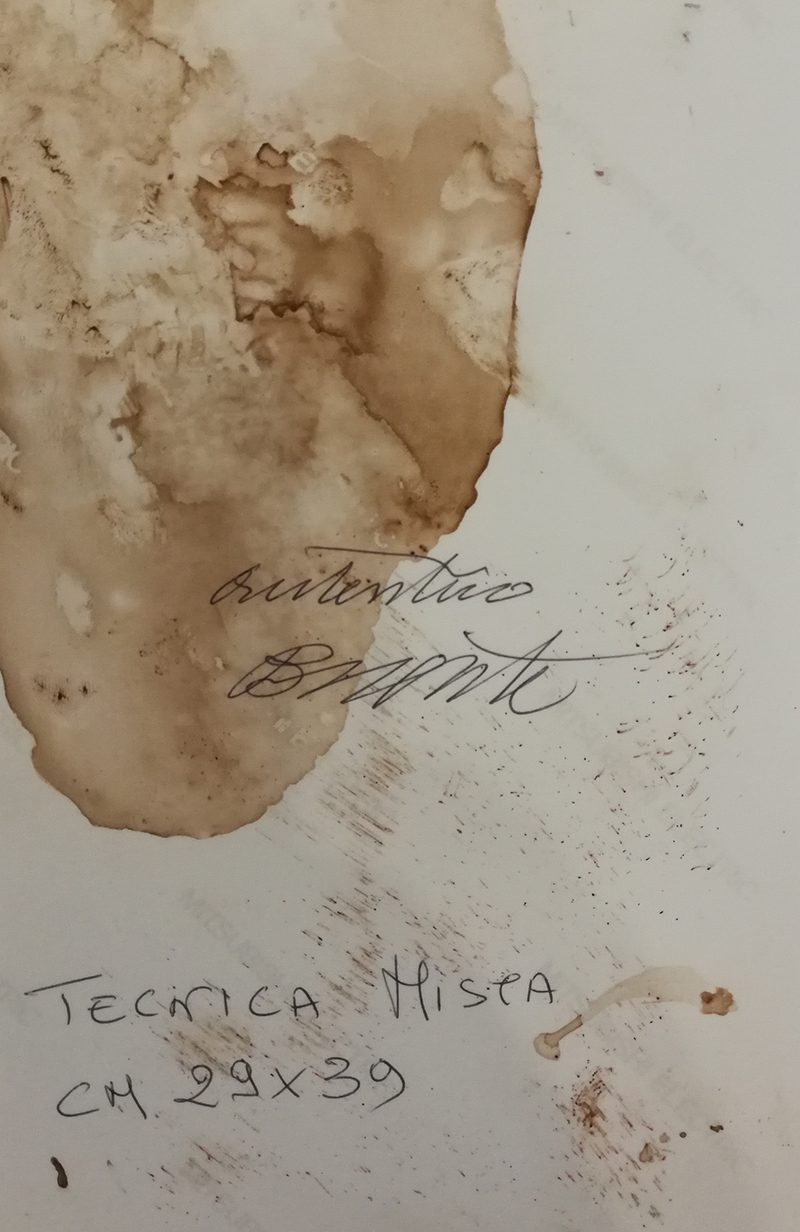 Certificazione: Firmato fronte opera ed autentica su foto dell'artista