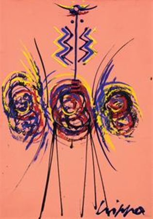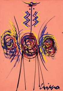 Roberto Crippa Milano 1921 - Bresso (Mi) 1972 Totem, (1960) Olio su cartoncino, cm. 70x49 Firma in basso a destra: Crippa. Al verso: dichiarazione di autenticità di Rosangela Baggini, Mi 7.7.79, con n. 637: timbro Bottega dell'Arte / Milano; su un cartone di sup- porto: scritta ADN M/3/XXXI/01 / Crippa. Certificato su foto di Roberto Crippa jr. con n. ADN M/3/XXXI/01.
