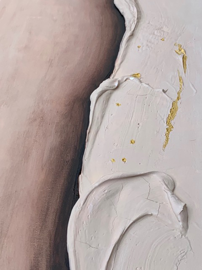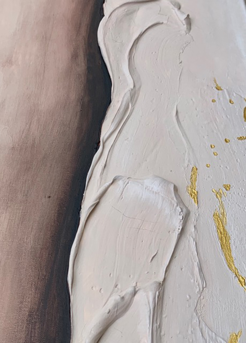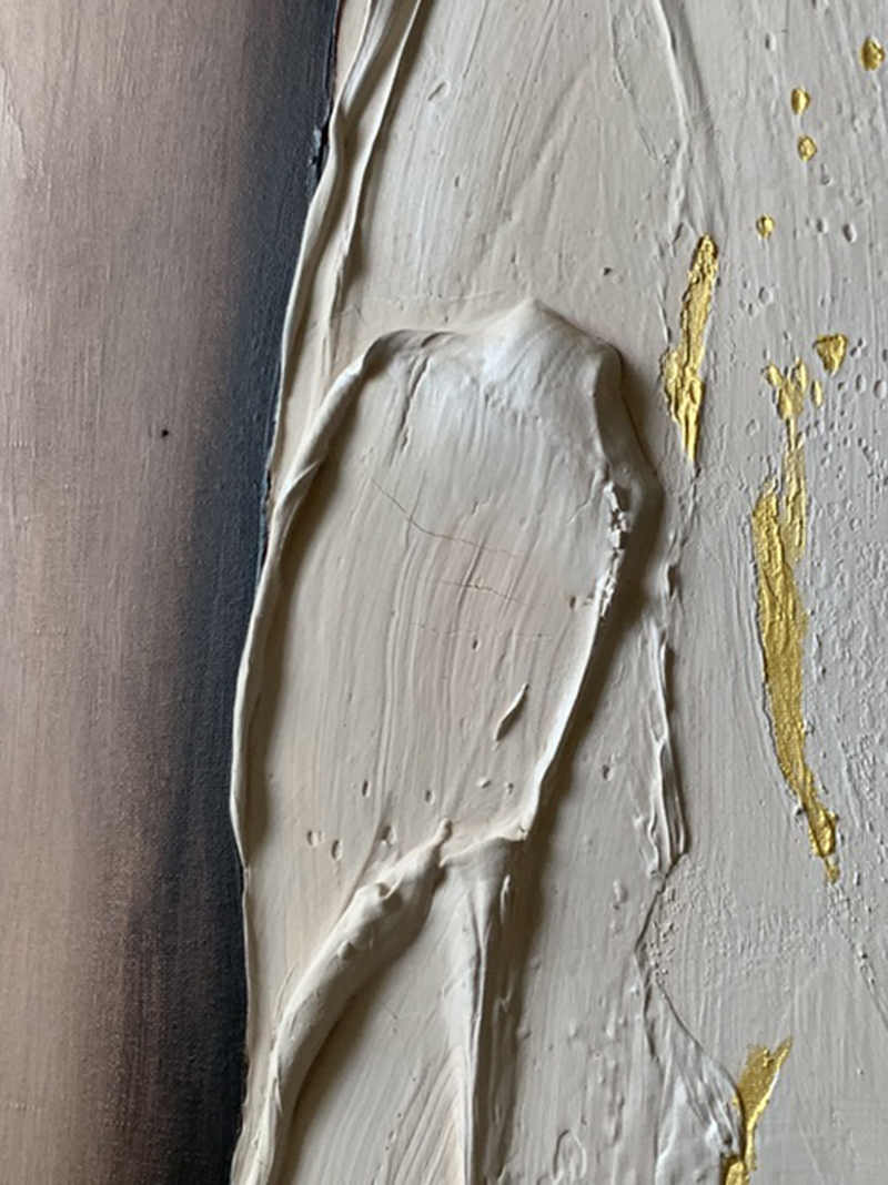 Tecnica mista stucco francese modellato con spatola e colorato con colore acrilico su tela