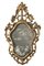 Specchiera di forma mossa in legno scolpito e dorato, fregi intagliati e traforati a volute e fiori. Specchio inciso a figura di soldato entro riserva a volute e motivi floreali. Veneto, secolo XVIII (cm 55x90) (restauri)