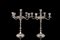 Coppia di candelieri a cinque fiamme in argento cesellato a volute vegetali, fu