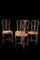 Gruppo di quattro sedie in noce intagliato con schienale traforato a volute fog