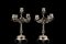 Coppia di candelieri a cinque fiamme in argento con braccia decorate a volute,