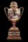 Manifattura di Vienna, secolo XIX. Vaso biansato in porcellana a fondo bordeaux