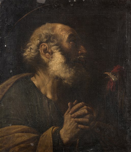 Giuseppe Vermiglio San Pietro e il gallo Olio su tela, cm 72,5x61 In cornice (di