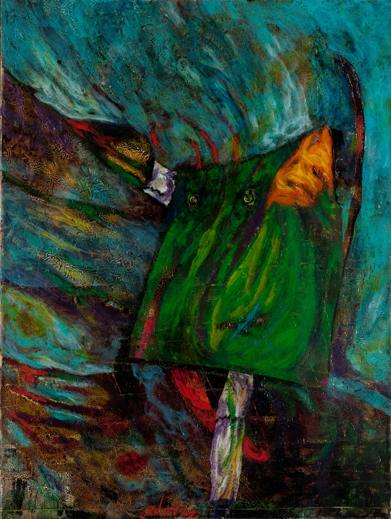 Gianni Dova (Roma 1925 ‑ Milano 1991) “Figure estive” olio su tela (cm 40x30) Firmato in basso al centro; firmato e titolato al retro